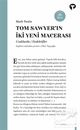 Kahramanlarımız Tom Sawyer ile Huckleberry Finn'i yeniden bir araya getiren bu kitap, büyük hiciv ustası Mark Twain'in Türkçede daha önce yayınlanmamış iki novella'sından oluşuyor: Uzaklarda ve Dedektifler.